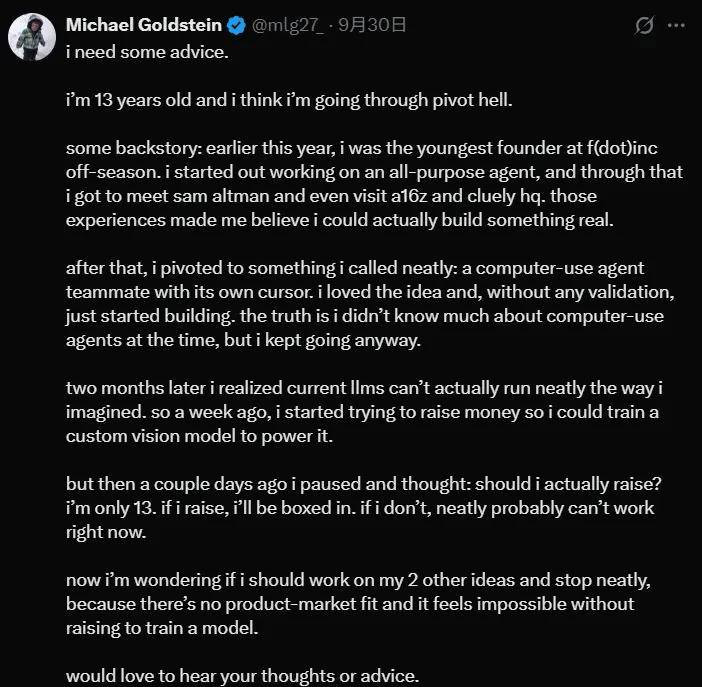 某 AI 创业者就发帖吐槽:12 岁就别卷创业了吧兄弟。哪怕你做成十亿美元,也会后悔没童年。鼓励这种行为的人都是喝了硅谷 VC 的洗脑水。