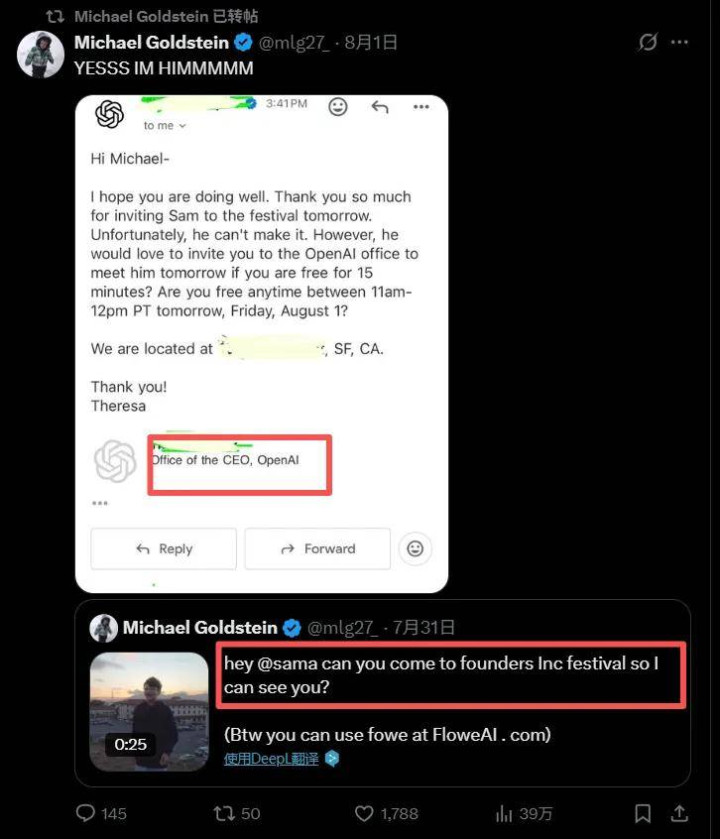 而且,他真见到了 Altman。